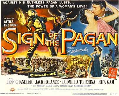 1954 press release photo from Universal-International for the film "Sign of the Pagan."